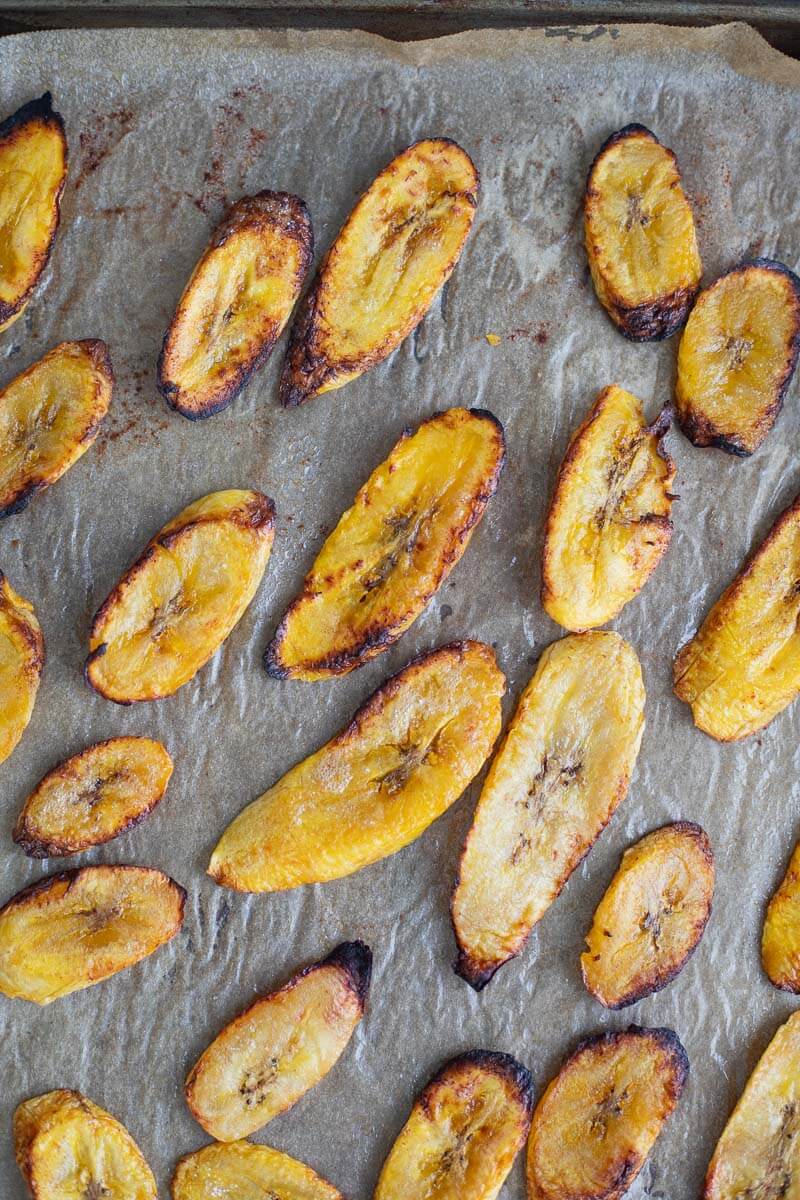 - No fancy ingredients, just ripe plantains and a baking tray.