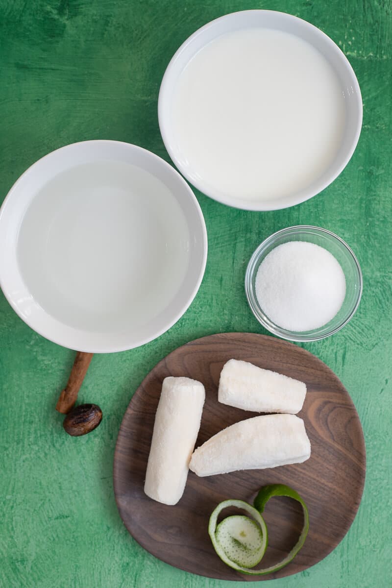 Cinnamon stick, nutmeg, and lime peel – These simmer in water to create a spiced base that pulls everything together. The lime peel adds fragrance. The cinnamon adds warmth. - Milk and water: