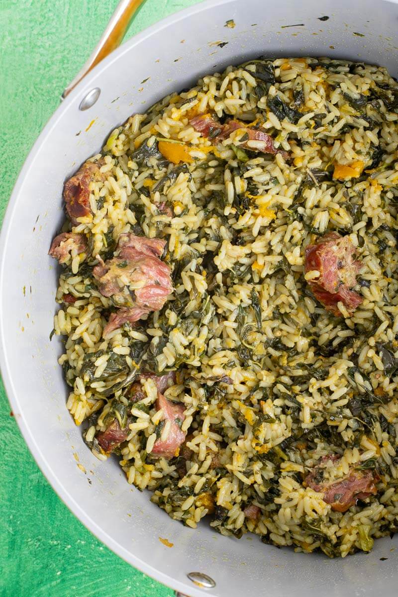 Stir in the smoked salt meat and cook for another 2 minutes.